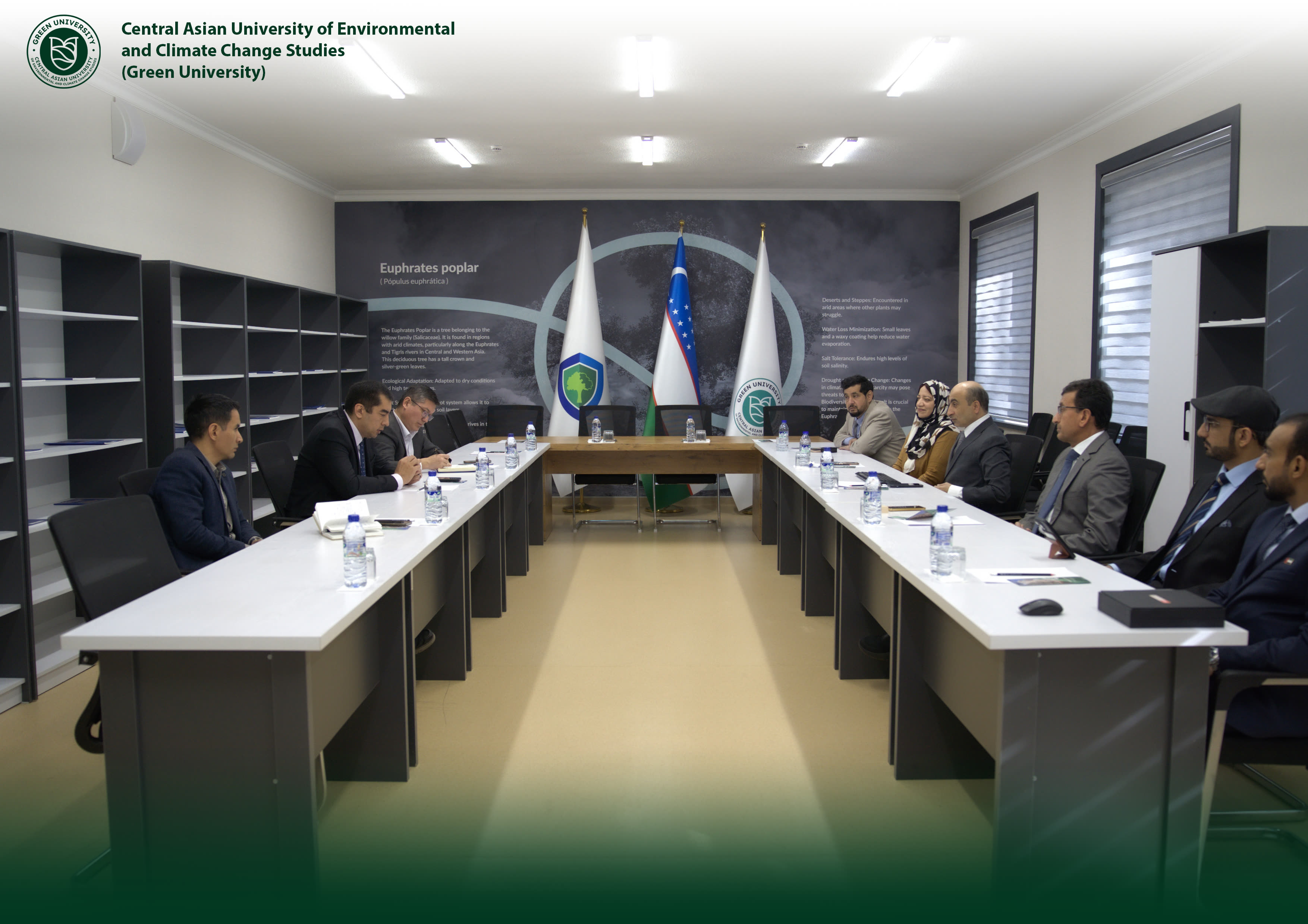 On 26 November 2025, Green University hosted a delegation from the United Arab Emirates University (UAE) led by Khalid Alhabi. The meeting reviewed the current state of bilateral cooperation, key achievements, and future priorities in the areas of ecology, environmental protection, climate change, and scientific research.